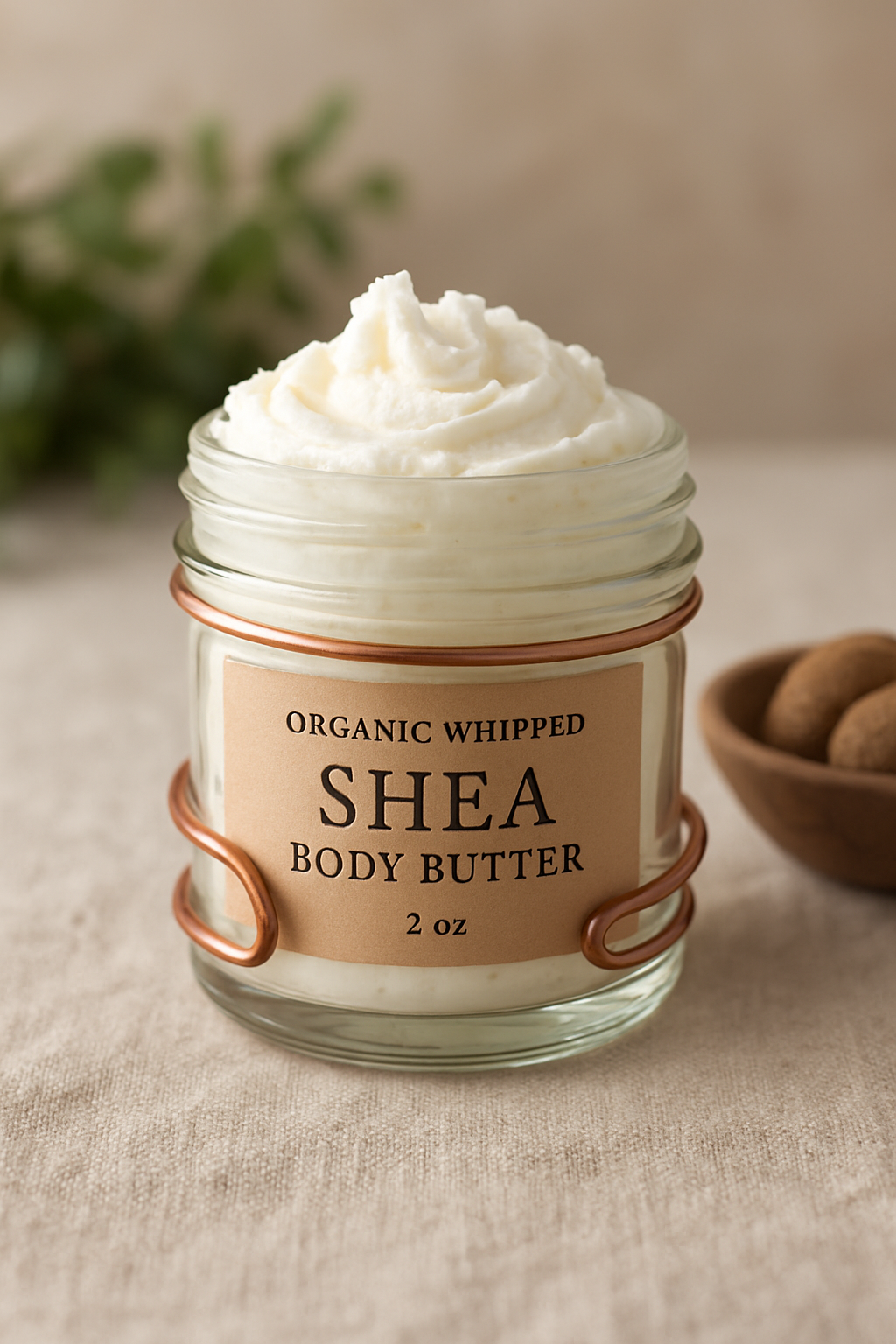 Whipped simplicity, straight from the Earth.Organic shea butter + coconut oil, blended into a fluffy, skin-loving cloud. Packaged in upcycled glass jars wrapped in copper โbecause your body deserves purity, and the planet deserves care.